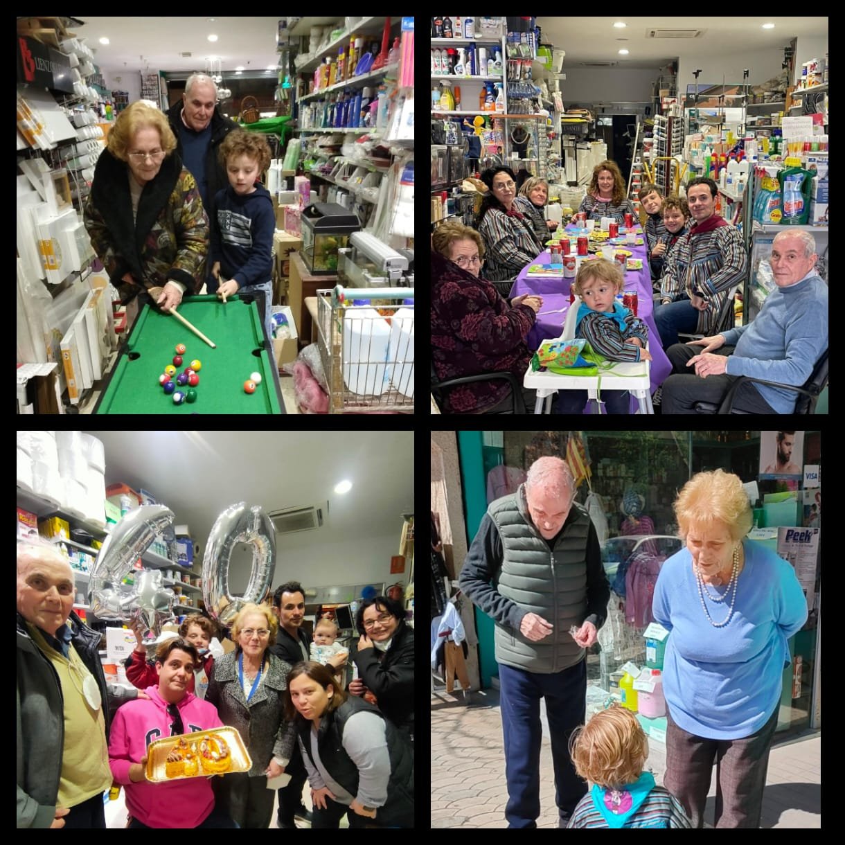 Han sido muchísimos años llenos de buenos y malos momentos, llenos de recuerdos entorno a nuestro comercio-familiar-tradicional que se puede decir que ha sido la prolongación de nuestras casas. En la actualidad aún bajan a nuestra tienda, nuestros padres, Pilar y José (muy mayores y con achaques), LOS FUNDADORES. Nuestro comercio nos ha permitido criar en el día a día a nuestros hijos y a cuidar de nuestros padres, hemos podido respirar y compartir cada momento de sus vidas.
